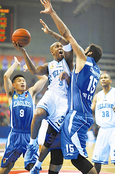 11月19日晚,在CBA第8轮的比赛中,北京首钢队主场114比113险胜青岛双星。图为马布里上篮。