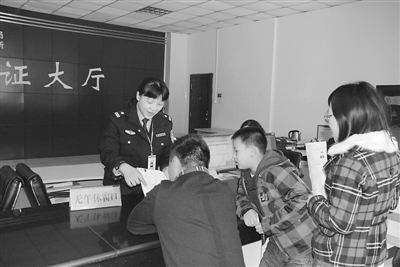 在开展党的群众路线教育实践活动中,江苏宿迁市宿豫区紧紧围绕群众关注的窗口服务时间、服务效率等问题,认真整改,并要求各职能单位开设“无休息日窗口”,实施中午无午休、周六周日不休举措,让前来办事的群众随到随办,不再等待。图为11月13日宿豫公安分局交巡警大队车管所副指导员汤琪在午休时间为群众办证。 张公辉 摄