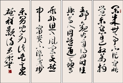 秋日偶成 宋·程颢诗(草书四条屏)彭玉香
