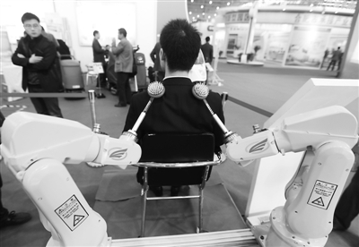 在第八届中国(合肥)国际家用电器暨消费电子博览会上,机器人捶背机备受青睐。有业内人士指出,智能机器人接受的不再是“填鸭式教育”,用人工的方法把智能输入到计算机中间去,能像现在人类的小孩一样自我学习知识,最终形成自己的意识。朋涛/CFP
