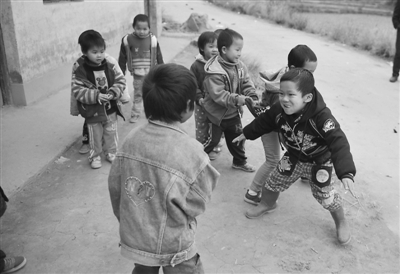 11月26日,罗龙教学点的孩子们在做游戏。