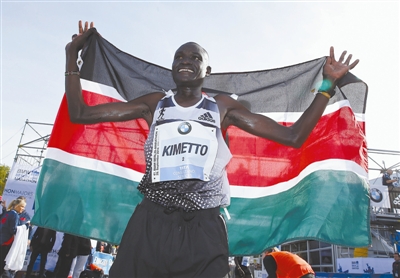 14年前,当16岁的基梅托通过电视屏幕看到两位非洲长跑传奇人物——肯尼亚人保罗·特加特和埃塞俄比亚人海利·格布雷塞拉西,在2000年悉尼奥运会男子万米决赛中的激情碰撞时,这位从小只能用放牛打发业余时间的肯尼亚小伙深受震撼。“当时我就想,说不定哪天我也能跑到他们那样的水平。”在今年的柏林马拉松赛上夺冠后,成就梦想的基梅托终于可以与心中的偶像比肩。