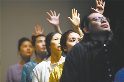 这些“素人模特”身着既有传统特色“新中装”长衣长袍,在小小的剧场里或安静打坐或缓缓行走。观众席,花瓶里插的竟然是银杏叶,精致的银壶,古朴着装的茶师缓缓侍弄着清茶。