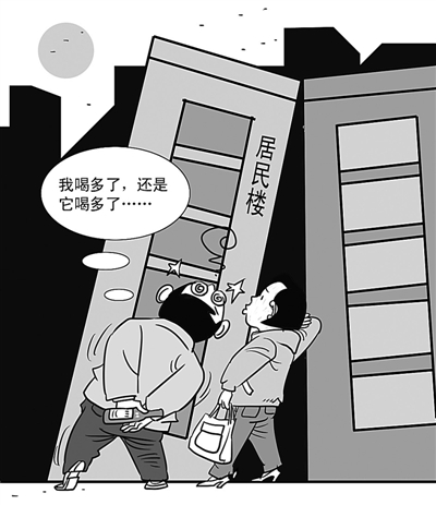 “楼亲亲”,听着挺浪漫,可这样的楼,得是多大胆儿的人才能每晚继续在里面呼呼睡觉,全然忘记家中的裂缝和整栋楼的倾斜?尽管有关部门检测之后告诉大家“没问题”、“不影响”等等,但这样的情况怎么也不能算正常吧。正常的楼都“相敬如宾”,哪有“亲”在一起的?但愿有关部门真能监测得足够密切,保证万一有意外,居民们可以安全离开。 □赵春青/图 童生/文