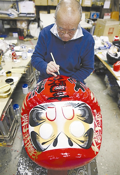 12月3日,日本群马县高崎,艺术家们正在为参加众议院选举的议员们绘制达摩不倒翁。许多参选的候选人都会准备一个达摩不倒翁,以求获得好运。当人们想要实现一个愿望时,比如赢得一次政治选举,就会在许愿时先给不倒翁画上一个眼睛,愿望实现后,再画上另一个眼睛。