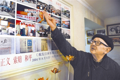 12月3日,高原老人向记者介绍对日诉讼索赔历程。