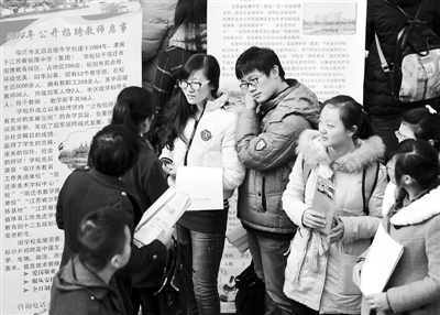 12月7日,江苏淮安,淮阴师范学院的毕业生在招聘会选择用人单位。