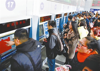 12月7日,乘客在上海火车站的自助售票大厅内购买火车票。