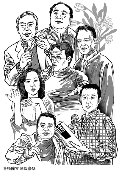 北师大文学创作硕士专业首批的6名作家导师中,不乏当代名家。《陆犯焉识》、《小姨多鹤》的作者严歌苓,中国作协副主席李敬泽,《花腔》的作者李洱,先锋文学代表作家格非,著名诗人欧阳江河,《人民文学》杂志副主编邱华栋等都是该专业的导师,而导师组的组长则是莫言。华丽的导师阵容使得北师大“作家班”顿时引来众多文学爱好者的目光,毕竟,10名学生分配到6名导师,意味着一名作家只带一两个学生。