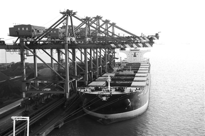 12月6日,货轮在山东日照港矿石码头卸载进口铁矿石。