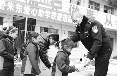 12月9日,成都铁路公安局西昌公安处普雄车站派出所民警朱东的到来,让四川凉山彝族自治州越西县尔赛乡中心小学的孩子们热闹起来,朱东将他募集到的价值20余万元的棉衣棉鞋发放给了山区的孩子们。