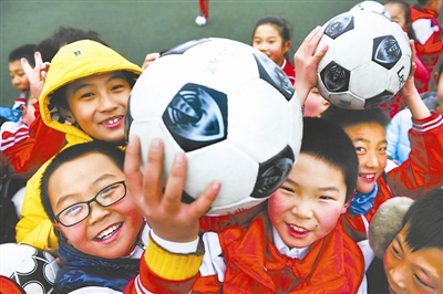 12月9日正逢“世界足球日”,内蒙古足球协会为内蒙古农业大学附属小学的学生捐赠了100个少儿足球,让足球运动“从娃娃抓起”。