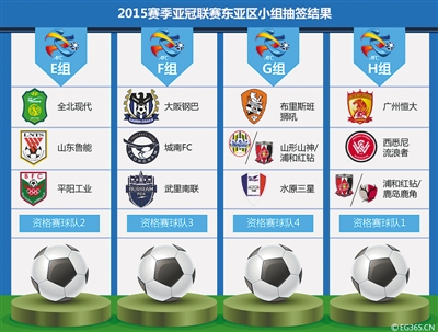 本周,2015赛季亚洲足球俱乐部冠军联赛(简称亚冠联赛)小组抽签仪式在马来西亚吉隆坡亚足联总部举行,即将出征新赛季亚冠(包括资格赛和小组赛)的49支球队各归其位。代表中超联赛出战的4支球队中,广州恒大与上赛季将自己淘汰出8强的卫冕冠军、澳超球队西悉尼流浪者同在H组,同组还有1支日本球队和1支资格赛球队;山东鲁能则和韩国全北现代、越南平阳以及1支资格赛球队同处E组。需要参加资格赛的北京国安和广州富力,如果顺利晋级将分别进入G组和F组。