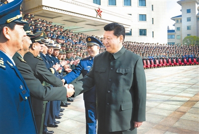 新华社南京12月15日电(记者曹智 李大伟)中共中央总书记、国家主席、中央军委主席习近平14日来到南京军区机关视察,代表党中央、中央军委向军区部队全体官兵致以诚挚问候,强调要紧紧围绕强军目标,深入贯彻全军政治工作会议精神,扎实推进依法治军、从严治军,全面加强部队革命化现代化正规化建设,切实履行好党和人民赋予的庄严使命。