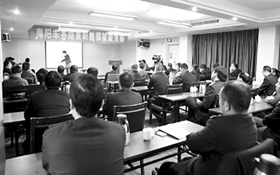 近日,郑州铁路局南阳车务段举办了2014年兼职教师技能竞赛。来自段管15个中心(直管)站的30名选手参加竞赛,覆盖了行车、调车等主要业务工种。同时,为拓宽兼职教师视野、提高教学水平,该段还特别邀请了洛阳职工教育培训基地的专职教师为选手们进行了示范课展示。郭永林 赵向阳 摄