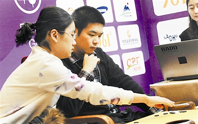 围棋混双冠军、中国运动员羋昱廷(右)和於之莹在比赛中。本报记者 许之丰 摄