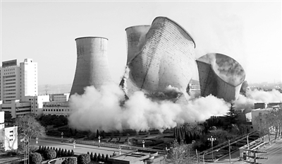12月17日,山东省枣庄市闹市区的华电国际十里泉电厂,对两个90米高的冷却塔进行安全爆破,拆除成功。