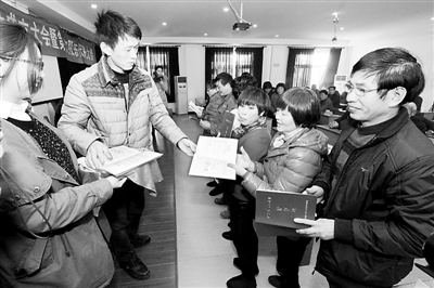 12月17日下午,浙江省舟山市定海区金塘镇河平社区河南股份经济合作社刟永芳等19位股东高高兴兴地领到了股权证,成为金塘镇首批拿到农村(社区)股份经济合作社股权证的农民。