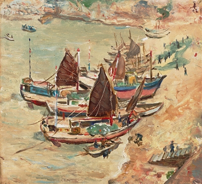 码头 (油画)胡善馀