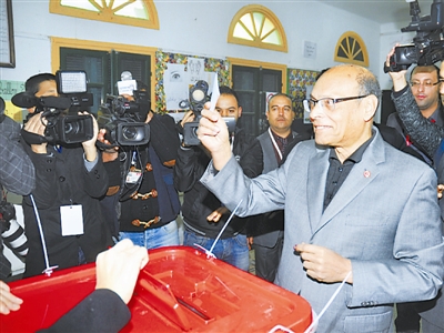 12月21日,在突尼斯首都突尼斯市,突尼斯总统选举候选人、现任总统马尔祖基在一处投票站投票。突尼斯当日举行总统选举第二轮投票,近530万选民将在现任总统马尔祖基和呼声党领导人埃塞卜西之中选出新总统。 新华社发 (阿代尔 摄)