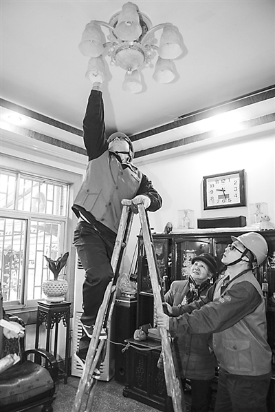 近日,浙江省东阳市供电公司志愿服务队的十余名志愿者来到社区高龄孤寡老人家中检查用电线路,免费为他们更换节能灯和安装漏电保护开关。志愿者们还给老人们送上油、米等慰问品,并提供安全用电指导,确保他们温暖度冬。 新华社发