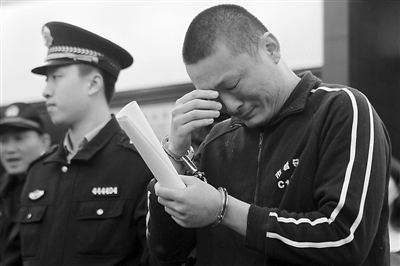 2014年12月24日,广州中院、海珠区法院、白云区法院等两级法院集中宣判了一批由广州交警重点侦破的交通肇事致人死亡案件。每到年底,酒后驾车等危害交通安全的现象增多,此次宣判旨在打击交通肇事后逃逸的犯罪行为。图为拿到判决书后的被告人郭斌斌后悔流泪。