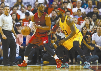 北京时间12月26日,由韦德(左)领军的热火队与詹姆斯率领的骑士队上演美职篮“圣诞大战”。韦德和詹姆斯曾联手为热火夺得两次总冠军,如今这对昔日并肩作战的“兄弟”却各为其主。经过激战,两人的比赛数据不相上下,但韦德最终带领球队赢下比赛。 CFP供图