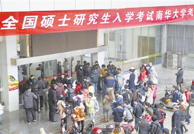 据教育部公布的数据估计,2015考研报考总人数为164.9万,比去年减少6.5万,降幅3.8%,考研报名人数连续两年下跌。新华社发(曹正平 摄)