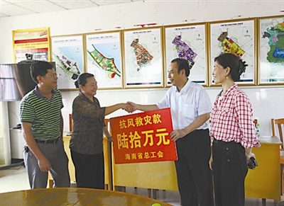 台风“威马逊”过后,海南各级工会第一时间参与抗风救灾,海南省总领导对灾区职工群众进行慰问并送上慰问金