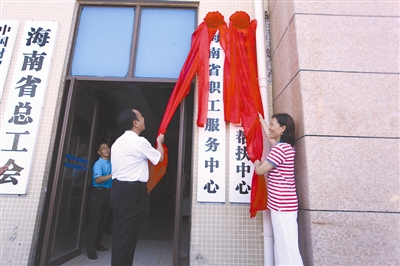 2014年9月30日,海南省职工服务中心挂牌成立,标志着海南工会帮扶系统将从单一的困难帮扶向困难救助、普惠服务和法律维权“三位一体”的职工综合服务体系转型升级