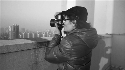 2014年12月31日清晨,正在拍摄中的张华宏。本报记者 赵翔 摄