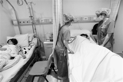 上海市瑞金医院的医护人员在病房内检查伤员(1月2日摄)。新华社记者 丁汀 摄