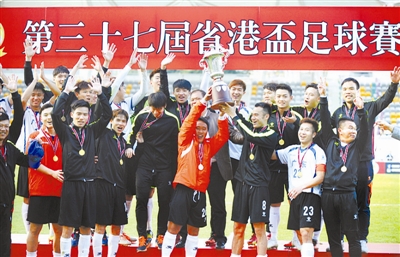 当日,在香港旺角大球场举行的第37届省港杯足球赛第二回合比赛中,广东队以0比0战平香港队,以总比分1比0获得冠军。 新华社记者 卢炳辉 摄