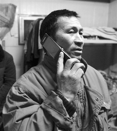 工人蒋兴华在新年到来前夕给家人打电话。由于一直没有讨要到工钱,他已经在工地上等了两个月。
