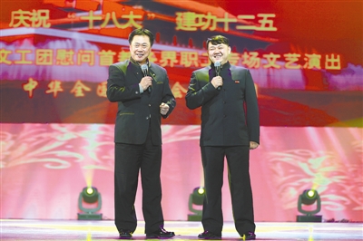 博林和徒弟春吉在表演小品《欢歌笑语》 张景义 摄