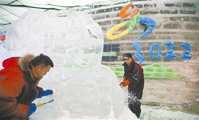 1月8日,艺术家们正在加紧制作申冬奥冰雕。记者从北京延庆龙庆峡冰灯艺术节获悉,今年的冰灯节将融入浓浓的奥运元素,来自清华大学、中央美术学院和四川美院等院校的雕塑师创作的29件申冬奥冰雕作品将首次亮相。在玲珑剔透的冰雪世界里,“申冬奥”题材的冰雕作品将带给游客不一样的运动激情。 新华社记者 张宇 摄
