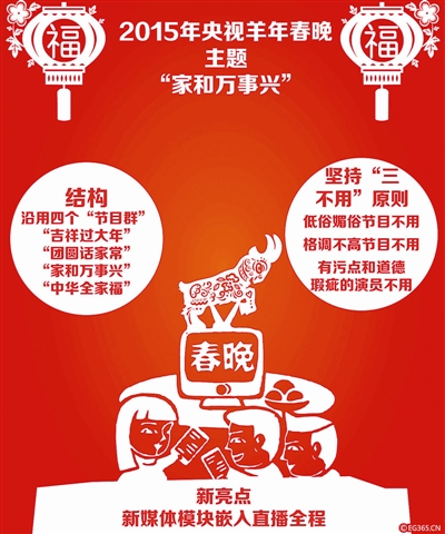 央视羊年春晚不光先后举办四场座谈会,分别邀请大学生、专家学者、观众和演艺界创作人士建言献策,通过微博和央视新闻共同发起“我为央视春晚献计献策”专帖,让网友对春晚主持人人选做预测,还发布了春晚主题“家和万事兴”的同步轻APP,推出“我的2014年度词牌”跨年行动,“互动”成了羊年春晚的一个关键词。