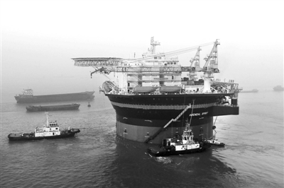 1月11日,南通中远船务设计建造的“希望7号”圆筒型海洋生活平台出海试航。这是该公司今年第一个出海试航的海工项目,“希望7号”出海试航将进行推进器安装作业,以及航速、倾斜试验和DP3全球定位系统等相关试验。 许丛军/CFP