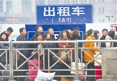 1月14日拍摄的在北京站等出租车的人群。