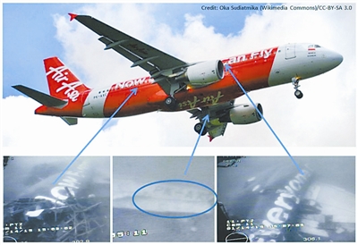 1月14日,新加坡国防部长黄永宏在其社交网站上传了搜救船只利用水下遥控装备拍摄的照片对照示意图。黄永宏说,一艘新加坡军舰发现了失事客机的机身。 新华社发