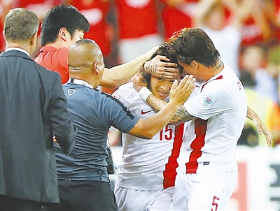 北京时间1月14日,出现在2015亚洲杯足球赛B组第二轮比赛中的这一幕,见证着中国男足近年来难得的一次高光时刻——凭借本场2比1击败小组赛最强对手乌兹别克斯坦队,国足不但一举打破近14年来正式大赛不胜对手的尴尬,还凭借小组赛两连胜锁定B组第一获得出线权。这是国足继1988年亚洲杯取得小组赛前两战胜利后,时隔27年后再次在亚洲杯小组赛拿下开局两连胜。