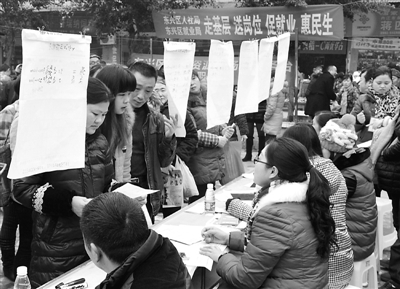 1月14日上午,在四川省内江市东兴区椑木镇农贸市场内,一场在“家门口”举行的乡村招聘会吸引了不少返乡务工者驻足咨询。据悉,该区人社局、财政局、就业局于春节前后3个月在全区29个乡镇(街道)开展“走基层·送岗位”现场招聘活动,为返乡劳动者送岗位、送政策、送培训。本次送岗入乡村招聘活动为今年首场。廖奇琪 周杨 何艳 摄