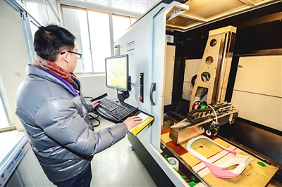 随着3D打印技术的成熟,越来越多的企业开始将这种新技术运用到实际的生产开发中,浙江省安吉县的一家办公椅生产企业就运用工业级3D打印(最大打印规格1米×1米)技术设计制造出最新款的办公椅椅背。 新华社记者 徐昱 摄