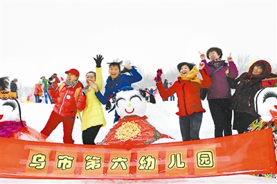 堆雪人、滑雪、雪上拔河、跳绳……1月16日上午,乌鲁木齐市雪莲山高尔夫灯光滑雪场一片欢乐。来自乌鲁木齐市199家企事业单位的近3000名运动员在这里展开了一场雪上别有趣味的运动竞技赛。 本报记者 李元程 通讯员 景双善 摄影报道