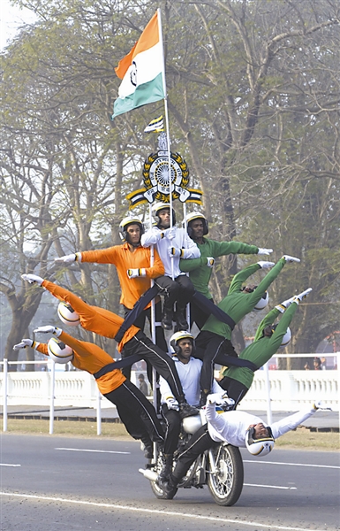 当地时间2015年1月20日,印度加尔各答,印度海陆空三军参加共和国日大阅兵彩排。东方IC 供图