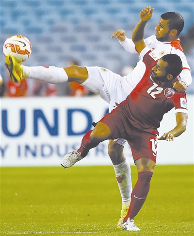 巴林队(图中白衣队员)和卡塔尔队等西亚足球新贵近年来后劲乏力。
