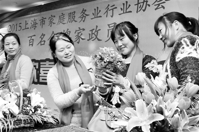 1月19日,上海,作为每年上海市家庭服务行业协会的“保留节目”,给留守上海为申城千百个家庭服务的“留守阿姨”们举办一年一度的“欢欢喜喜过大年”活动当晚举行,被邀请前来参加活动的“百名金牌家政员”是从全市80家“示范性服务站”中推选出来的。姐妹们欢聚一堂,现场展示和表演了家政服务技能和自编的文艺节目。钟阳 摄/东方IC