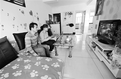 1月26日,西山煤电公司棚户区改造项目之一葡萄苑小区住户庞八小和妻子张英在客厅里看电视。