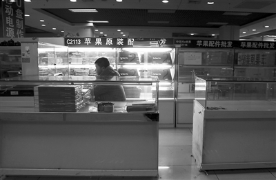 曾经热卖的电脑配件柜台现在只留下少部分货品,等待顾客选购,显得格外冷清。