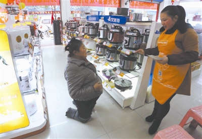 胡凤莲上街买电饭锅。买锅的钱是她节省了几个月的全部积蓄。